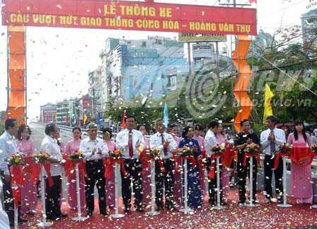 Sau 80 ngày thi công (làm việc 24/24h, kể cả những ngày nghỉ lễ Tết nguyên đán), công trình cầu vượt tại nút giao thông Hoàng Văn Thụ - Cộng Hòa đã hoàn thành vượt tiến độ khoảng 1,5 tháng, tương đương 1/3 thời hạn thi công.