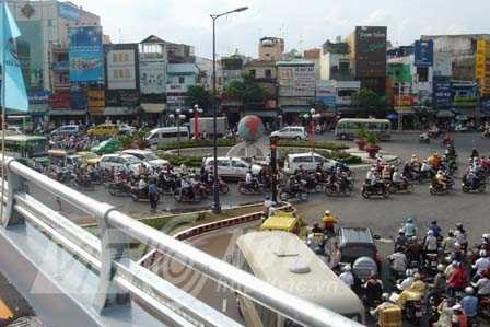 | Nhìn từ trên cầu xuống vòng xoay Cộng Hòa - Hoàng Văn Thụ. Ảnh: Phan Cường |