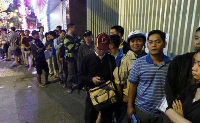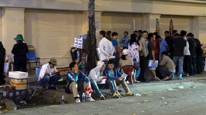 | Nhiều người mệt mỏi ngồi ngủ gục ở vỉa hè nhưng không dám rời vị trí. Anh Trần Văn Hợp (ngụ quận Bình Thạnh) kể: "Tôi đến từ lúc 1h sáng nhưng lúc đó đã có gần 100 người xếp hàng nên tôi không dám đi đâu nữa vì số thứ tự rất ít". |
