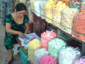 Theo quan sát của phóng viên tại các cửa hàng kinh doanh ở một số chợ trên địa bàn TP.Hồ Chí Minh như chợ Bình Tây (quận 6), chợ Tôn Thất Đạm (quận 1), chợ An Đông (quận 5)…, nhiều loại bánh, mứt được bày bán trong điều kiện thiếu vệ sinh, không được che đậy nên khó tránh khỏi bị ruồi và bụi bẩn bám vào.