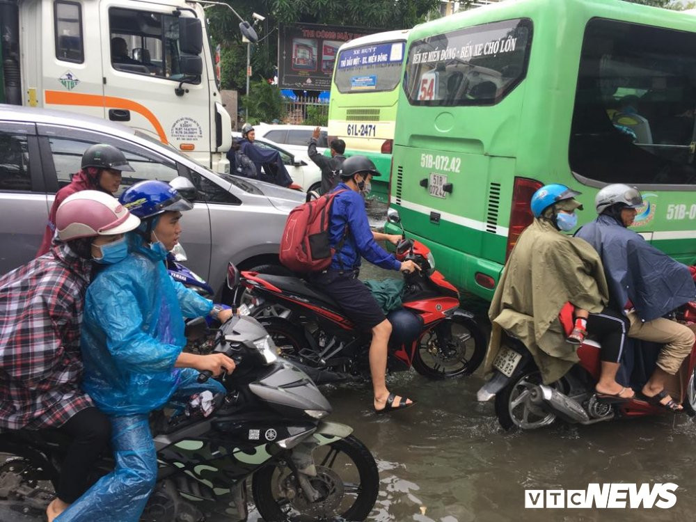 Mưa lớn khiến TP.HCM ngập lụt kéo dài. (Ảnh: Song Ngư)
