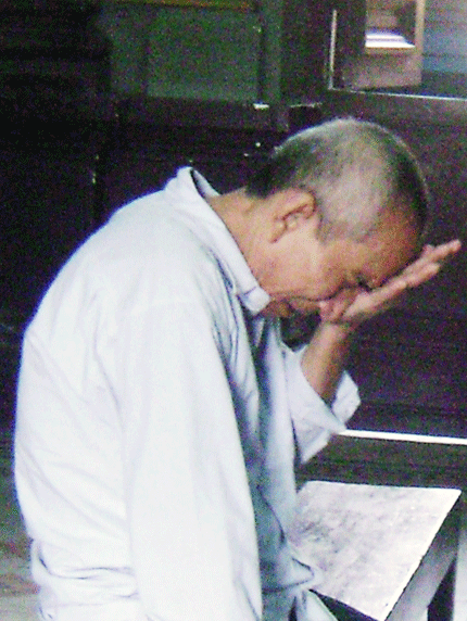 | Bùi Hữu Phúc đưa tay lau nước mắt trong phiên tòa ngày 28/12 |