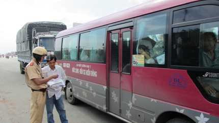 | Đội CSGT Rạch Chiếc tăng cường kiểm tra, xử phạt các loại xe khách trong dịp tết. |