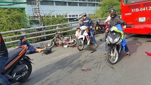| Nhiều nạn nạn cùng xe máy bị hất văng xa trên cầu vượt Cây Gõ |