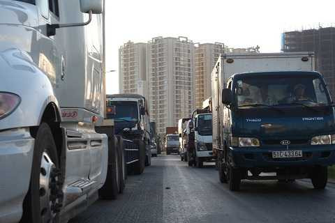 | Giao thông vào phà Cát Lái kẹt xe kinh khủng. |