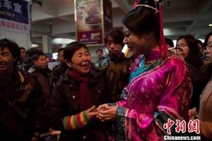 (VTC News) - Chiều 15/1, trước cửa nhà ga thành phố Hàng Châu, tỉnh Chiết Giang (Trung Quốc) xuất hiện một người phụ nữ ăn vận cổ trang, tay cầm túi bạc đem phân phát cho những công nhân nghèo đang chờ bắt tàu về quê ăn tết.
