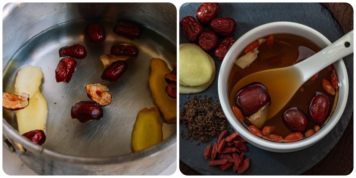 - Cho đại táo và gừng tươi vào bình giữ nhiệt, đổ nước mía vào đậy kín. Sau 30 phút, bạn có thể dùng.