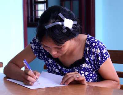 Chị Ngô Thị Thanh và vết thương trên đầu viết tường trình gửi lên CA phường về việc luôn bị người chồng vũ phu Ngô Văn Quang đánh đập