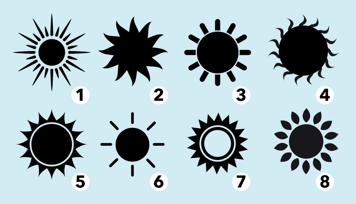 Trắc nghiệm vui đoán tính cách: Chọn hình mặt trời ấn tượng nhất với bạn.
