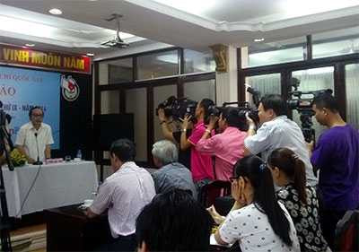 Phóng viên tác nghiệp tại buổi họp báo về Giải Báo chí Quốc gia lần thứ IX-năm 2014. Ảnh: MINH DƯƠNG |