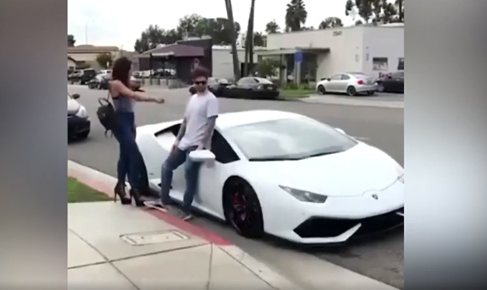 Ngồi dựa vào siêu xe bên đường để "cưa cẩm" cô gái xinh đẹp nóng bỏng đang đi tới, chàng trai gặp phải tình huống bất ngờ khiến anh "muối mặt".