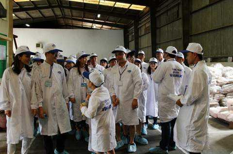 Khu vực đầu tiên các gia đình được tham quan là khu vực chế biến thức ăn. Với nguồn cỏ nhập từ Mỹ, kết hợp với thức ăn tươi trồng theo phương pháp hiện đại và được trộn theo tỉ lệ chuẩn cùng các thành phần thức ăn tinh và thô, các gia đình đã không khỏi ngỡ ngàng với khẩu phần ăn chế biến thật công phu của các cô bò ở đây. Anh Minh, một trong những ông bố “ít nói” nhất đoàn, cứ tấm tắc khen “mình nghĩ chỉ cần cho bò ăn cỏ, sang nữa thì lá mía, lá ngô thôi chứ không tưởng tượng được là nhiều món đến vậy”.