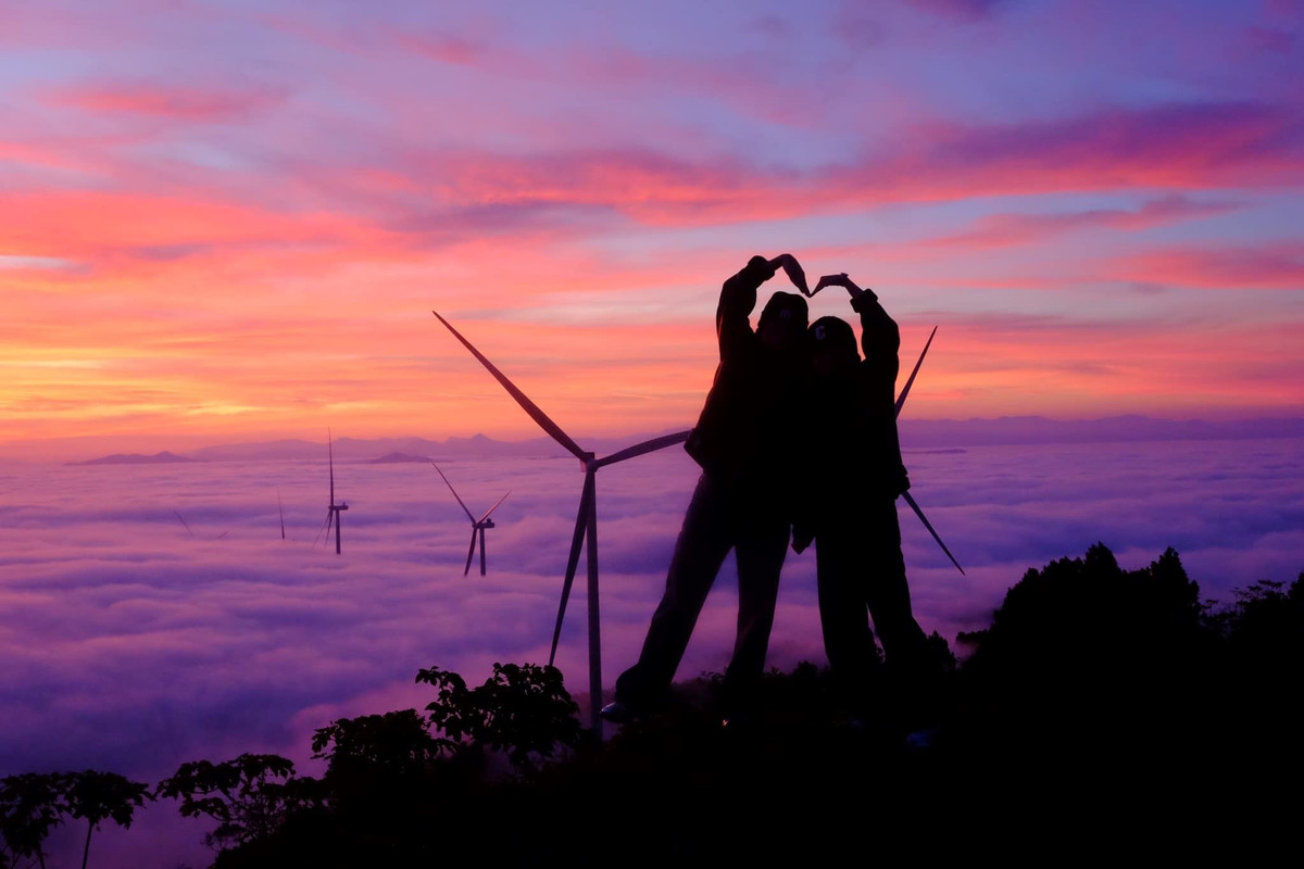 Thời điểm đẹp để có thể săn mây là khoảng 5 giờ sáng. Lúc này trời vẫn còn trong, mây chưa tan hết, bình minh đang dần rạng, tạo thành một bức tranh tuyệt đẹp. Đến đây, du khách sẽ bắt gặp biển mây bồng bềnh cùng với hàng chục cánh quạt gió thoắt ẩn thoát hiện trong màn sương.