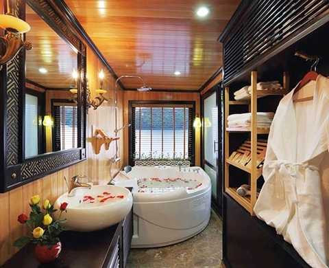 Điều đặc biệt là tất cả các phòng đều có Jacuzzi (bể sục đôi), sẽ làm cho hành trình của bạn thật đặc biệt. Tàu có phòng xông hơi (xông hơi khô, xông hơi ướt) spa massages sẵn lòng phục vụ nhu cầu thư giãn của du khách.