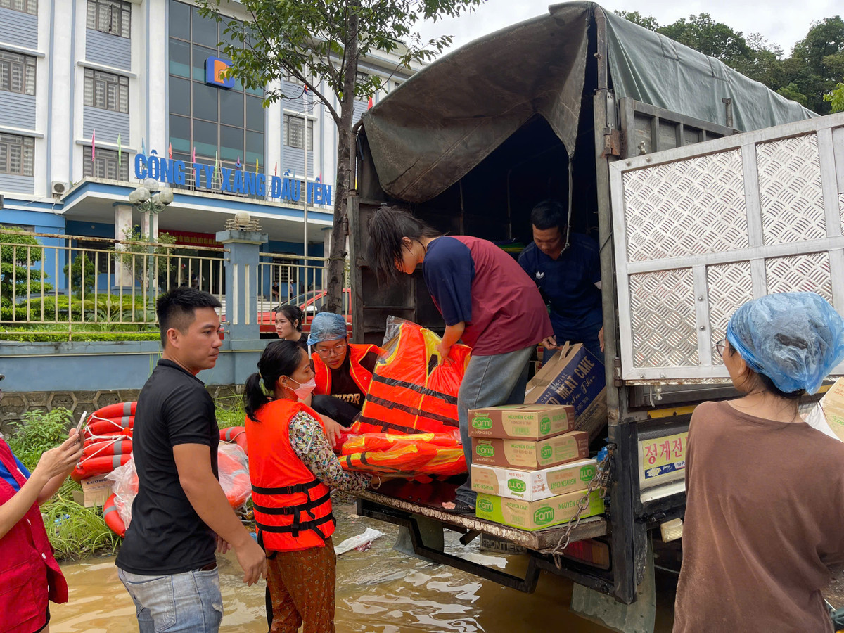 15h30 ngày 10/9, chị Hiền (Việt Trì, Phú Thọ) có mặt tại khu vực cây xăng giao cho lực lượng chức năng 60 chiếc áo phao để giúp đỡ cứu trợ những người dân bị mắc kẹt trong lũ. Nhóm của chị Hiền khoảng 5 người, di chuyển đến Yên Bái từ giữa trưa và tự tổ chức đi phát thức ăn, nước uống, áo phao tận tay cho những người cần cứu trợ.