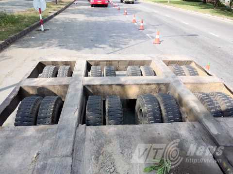 Cụ thể, khi xe Minh Thành đi qua bàn cân, do kéo hàng dạng siêu trường, siêu trọng nên kết cấu rơ-moóc có khác với những rơ-moóc chở container thông thường.
