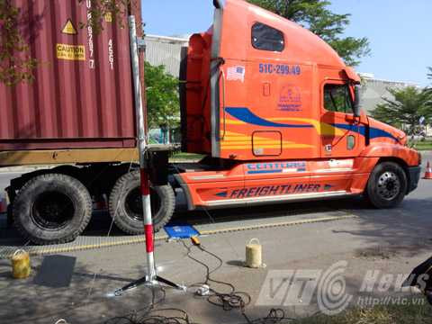 Chiếc đầu kéo mang BKS 51C-299.49 chở container BKS 51R-1735 do tài xế Lâm Hoàng Dũng điều khiển được đề nghị vào trạm cân thực hiện việc đo tải.