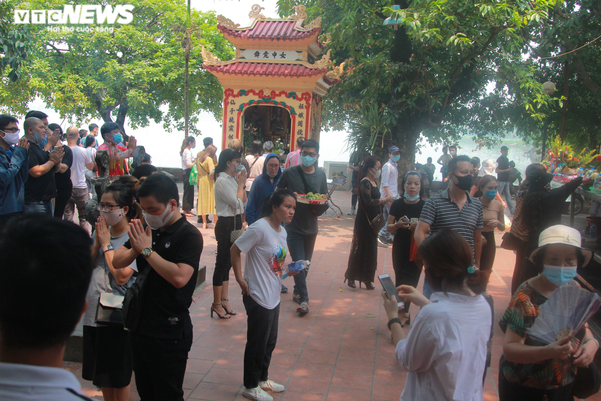 "So với mọi năm, năm nay tại chùa Trấn Quốc vắng hơn hẳn và người dân chấp hành việc đeo khẩu trang phòng COVID-19 khá tốt", chị Bùi Thủy chia sẻ và cùng người thân bỏ khẩu trang ra để chụp ảnh kỉ niệm ngày đi lễ Rằm tháng Bảy.