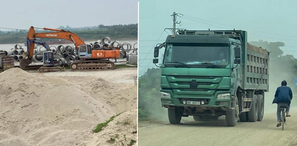 Hàng ngày tại đây có hàng trăm lượt xe ô tô “hổ vồ” với đủ các loại "3 chân- 4 chân" được cơi nới thành thùng chở đầy cát, sỏi, vật liệu xây dựng cũng như các xe bồn chở bê tông từ các trạm trộn nêu trên chạy ầm ầm trên mặt đê sông Đuống rồi rẽ xuống các con đường nhánh nối vào chân đê, tỏa đi nhiều khu vực khác trong huyện Tiên Du.