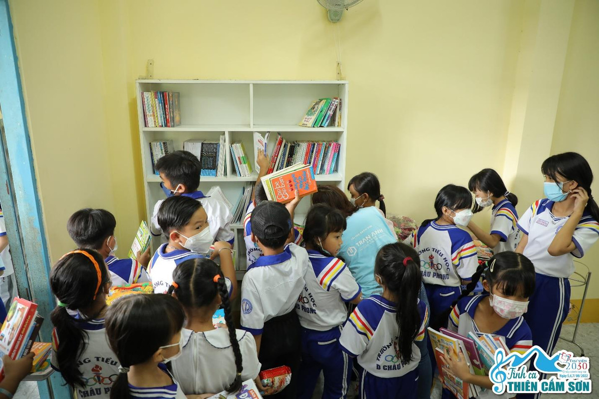 Bên cạnh Trường tiểu học “B” An Hảo, hành trình chắp thêm đôi cánh tri thức cũng đến với Trường tiểu học D Châu Phong, huyện Phú Tân, An Giang. Khi được cầm trong tay những quyển sách mới, những tựa sách hấp dẫn, sự phấn khởi và niềm hạnh phúc của các em tiểu học là thành quả to lớn của dự án trao tặng thư viện sách.