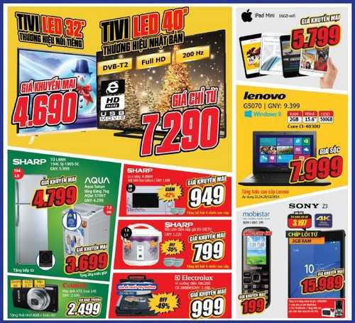 Ngoài ra, một số sản phẩm giá sốc đang được rất nhiều khách hàng quan tâm như: tivi led 40” giá chỉ 5,990,000đ, máy giặt Sanyo Aqua lồng đứng kg giá 3,699,000đ tặng 2kg nước giặt, lò vi sóng Electrolux giá giảm 36% còn 1,599,000đ, nồi cơm điện Sharp giá 799,000đ tặng bộ bát 4 chiếc cao cấp.