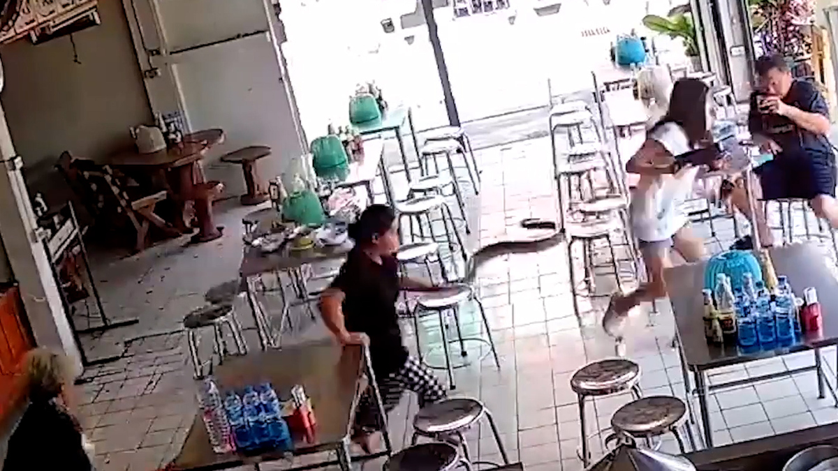 Con trăn bỗng dưng xuất hiện, bò rất nhanh vào một nhà hàng ở Bangkok, Thái Lan khiến các thực khách hoảng loạn chạy trốn.