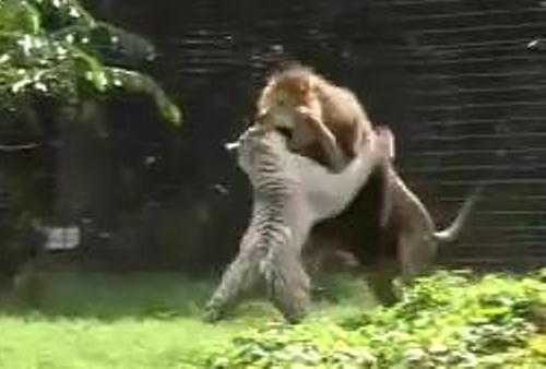 (VTC News) - Con hổ trắng lao vào và quật ngã sư tử.
