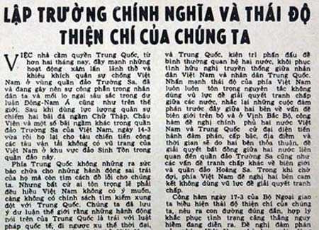Bài báo này nêu rõ: “Xét về nguồn gốc lịch sử và căn cứ vào Công pháp quốc tế, Việt Nam có đầy đủ các yếu tố căn bản để khẳng định chủ quyền của mình đối với hai quần đảo Hoàng Sa và Trường Sa. Dư luận rộng rãi trên thế giới hiểu rõ điều đó và đã lên tiếng xác nhận hai quần đảo này là của Việt Nam”.