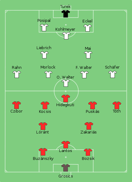 | Đội hình xuất phát của Hungary và Đức ở trận chung kết |