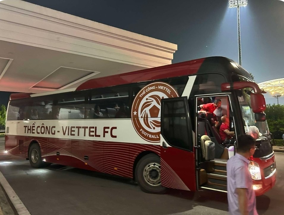 Cuối cùng, các cầu thủ Thể Công Viettel phải ngồi hơn 4 giờ đồng hồ trên xe mới có thể đến sân và vội vàng vào khởi động.