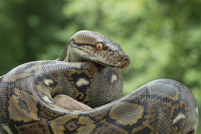 Mồi của trăn gấm thường là động vật có vú như chuột. Loài bò sát này sống ngoài tự nhiên và cũng được con người nuôi.
