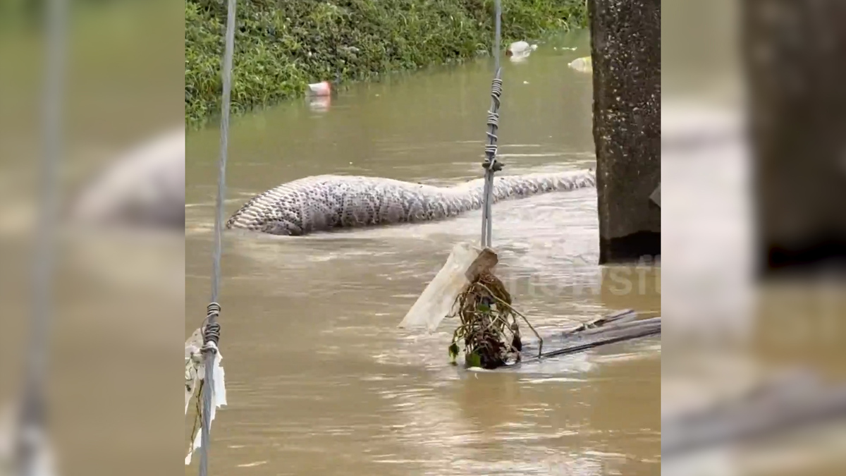 Trăn khổng lồ mắc kẹt trên đường ngập ở Thái Lan