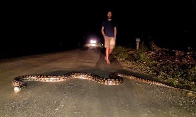 Công ty Destination Daintree, chuyên tổ chức tour tới Daintree đăng tải bức ảnh con trăn trên Facebook, đồng thời cảnh báo các du khách cẩn thận khi đi qua rừng mưa nhiệt đới vào ban đêm, vì có thể bắt gặp lũ trăn nằm nghỉ ngơi giữa đường bất cứ lúc nào.