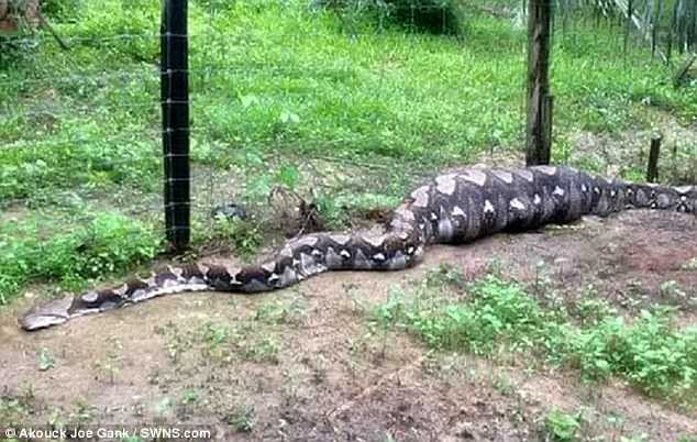 Theo lời kể của người dân địa phương, con trăn này tìm cách 'làm thịt' 2 chú dê sau khi trườn vào trang trại trong làng khi người chủ đi vắng.