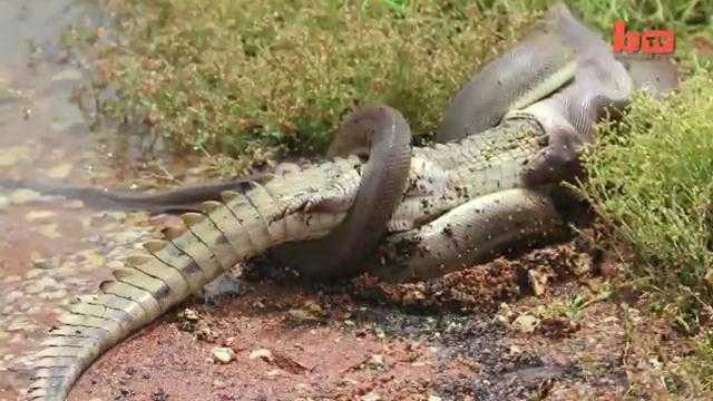 Trăn nuốt chửng cá sấu sau 5 giờ vật lộn