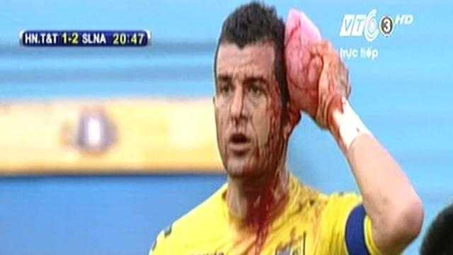 | Huy Hoàng nhập viện khẩn cấp sau cú trả đũa ác ý của Samson. Hình ảnh kinh hoàng nhất lượt đi V-League 2012 |