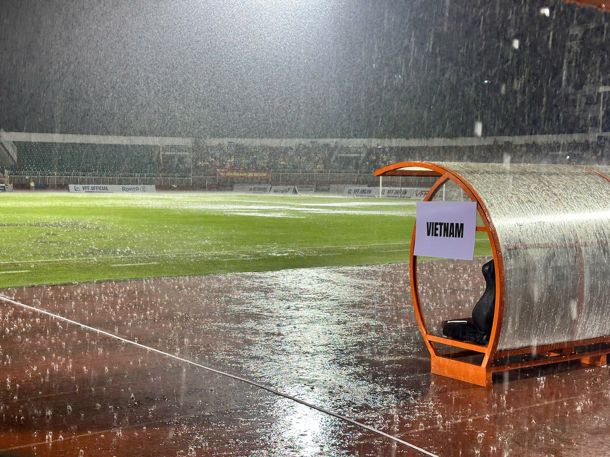 Cơn mưa lớn trên sân vận động Thống Nhất.