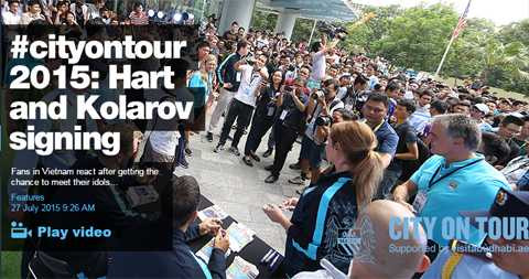 Trang chủ Man City vừa tung clip về hoạt động của thủ thành Joe Hart và hậu vệ Kolarov tại Việt Nam trong vòng vây fan hâm mộ.