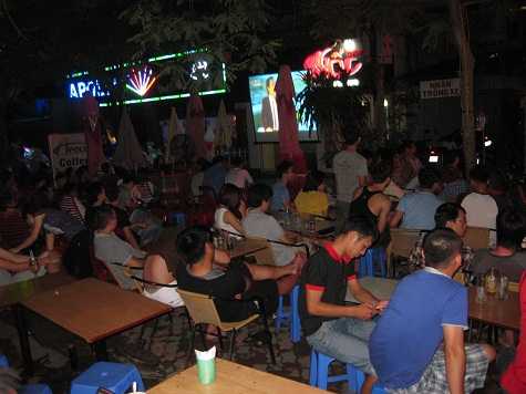 (VTC News)- Những quán cà phê ở khu vực Hồ Đắc Di đã có một đêm làm ăn bận rộn để phục vụ lượng khách đông đảo theo dõi trận chung kết Euro 2012 giữa TBN và Ý.
