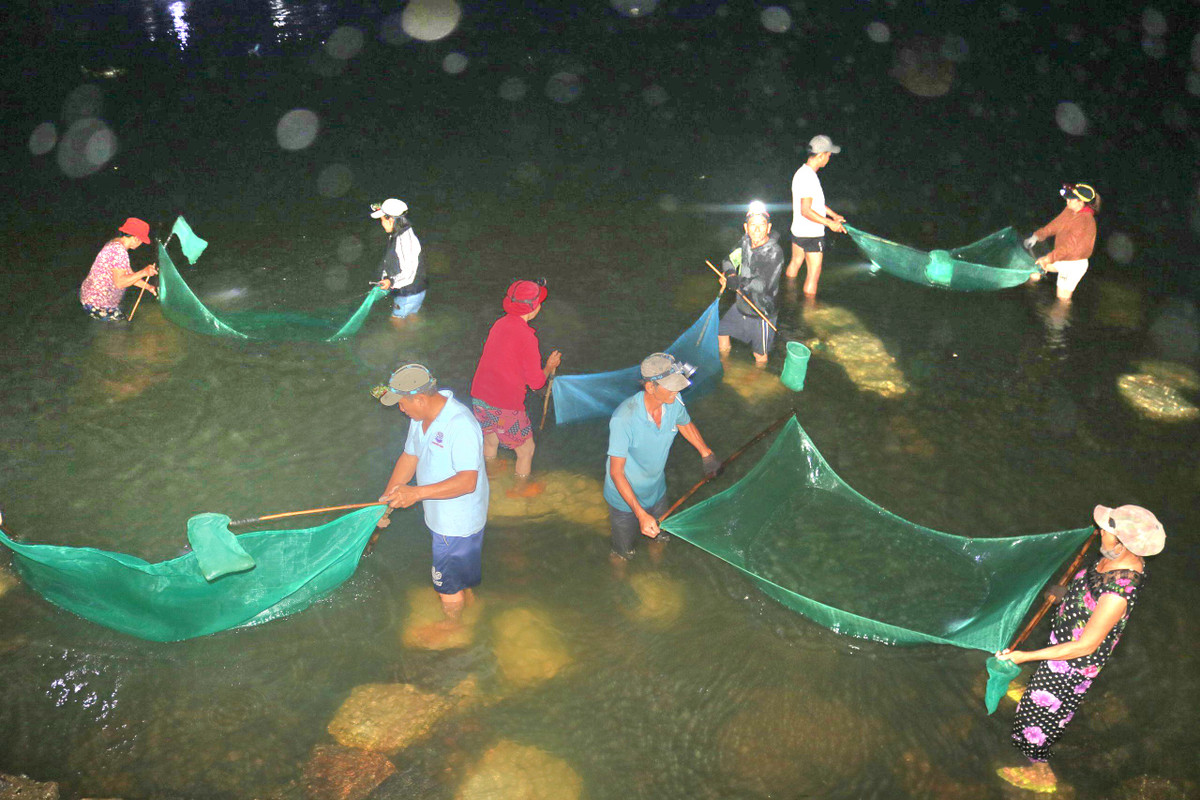 Khoảng 19h, khi bóng tối dần buông, chuông nhà thờ Mằng Lăng ngân vang, cũng là lúc hàng chục người dân kéo nhau về đập Tam Giang (xã An Thạch, huyện Tuy An) để "vớt lộc" chình giống.