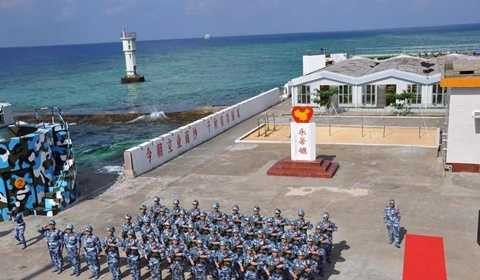 | Binh lính Trung Quốc tại đảo đá Chữ Thập mà nước này chiếm đóng trái phép của Việt Nam từ năm 1988 đến nay |