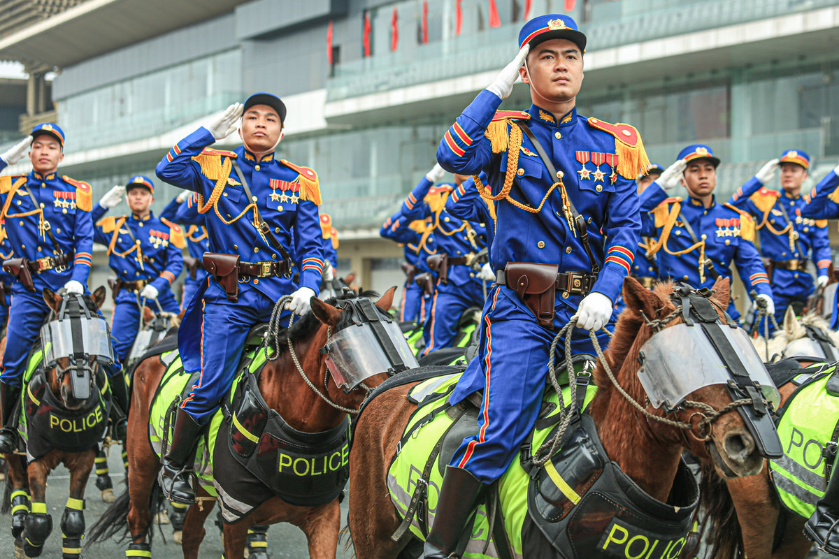 Đoàn Cảnh sát Cơ động Kỵ binh tham gia diễu hành trong Lễ kỷ niệm 50 năm lực lượng Cảnh sát cơ động.