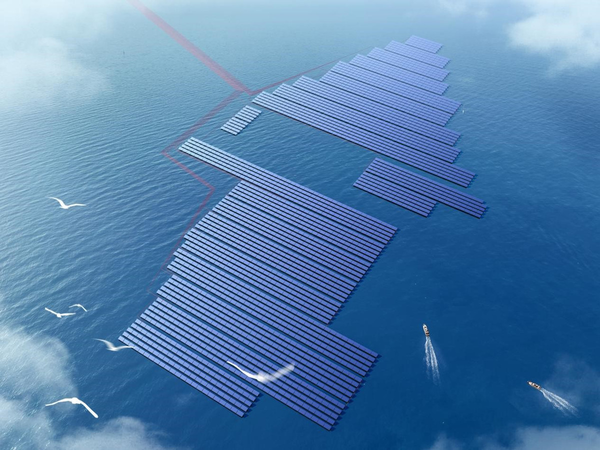 Trang trại được lắp đặt hơn 2,3 triệu tấm pin mặt trời hai mặt loại n-type, mỗi tấm có công suất 710 W, với góc nghiêng 15 độ. Theo đơn vị vận hành, điều kiện ngoài khơi với nhiệt độ không khí thấp hơn và ánh sáng phản xạ từ mặt biển giúp tăng hiệu suất phát điện, cao hơn 5% - 15% so với các nhà máy điện mặt trời trên đất liền.