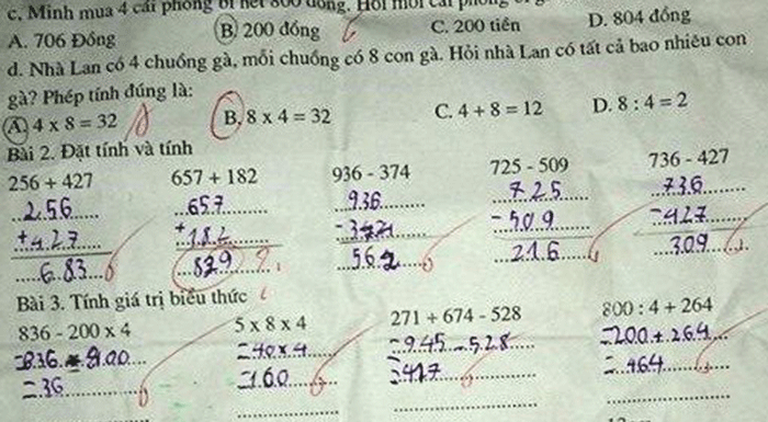 Dân mạng bàn tán xôn xao về bài toán tính gà trong bài kiểm tra em học sinh tiểu học. Bài toán được phụ huynh chia sẻ trên mạng xã hội.