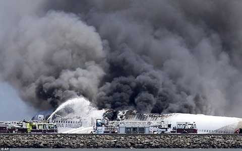 Chiếc Boeing 777 chuẩn bị tiếp đất thì các phi công nhận cảnh báo không nên đáp xuống vì đang bay quá chậm. Trước khi máy bay đập đuôi xuống đường băng chỉ 1,5 giây, phi công vội vàng tăng tốc song không kịp.