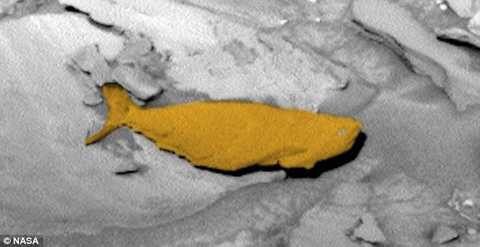 | Hóa thạch hình cá này tiếp tục là một trong những bằng chứng khẳng định có một sự sống cổ đại từng có trên sao Hỏa, trước đó là sự xuất hiện của hình ảnh giống khỉ, cây thánh giá, súng lục, mái nhà….Nguồn ảnh: Dailymail. |