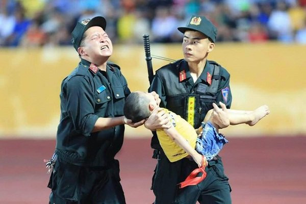 Hai luồng ý kiến trái chiều tranh cãi quanh việc chiến sĩ cảnh sát cơ động cứu cháu bé bị co giật tại sân vận động Thiên Trường – Nam Định vào tối 4/8.