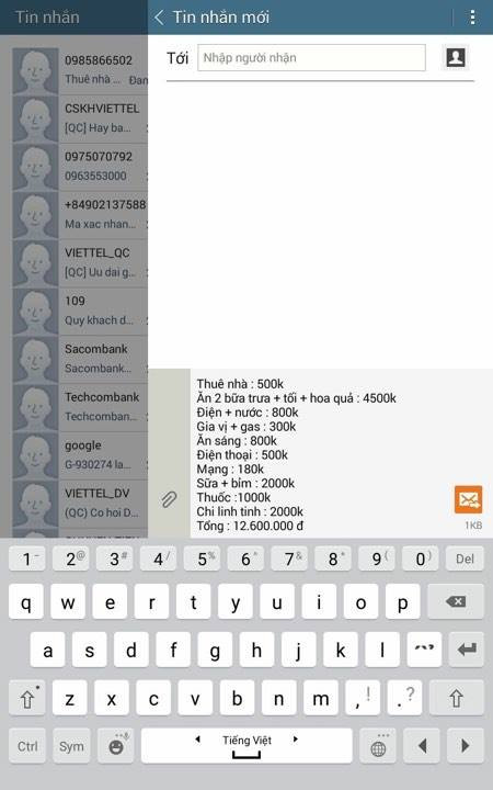 Theo đó, các khoản thu chi mà gia đình chị liệt kê bao gồm: