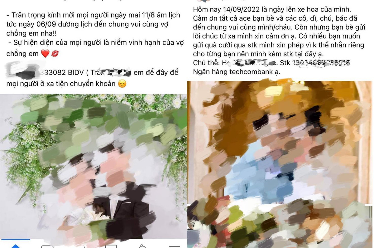 Được biết, một người quen của chủ bài viết vừa đăng tải thông báo kết hôn của mình kèm với số tài khoản, và điều này khiến cô cảm thấy rất không được thoải mái. Theo cô, việc mừng cưới là tùy vào tấm lòng của người được mời, và nếu họ thật sự có tâm thì sẽ tìm cách để gửi tiền nếu như có việc bận không thể góp mặt. Hành động đính kèm số tài khoản lên trang cá nhân như vậy đối với cô là hành động không được tế nhị.