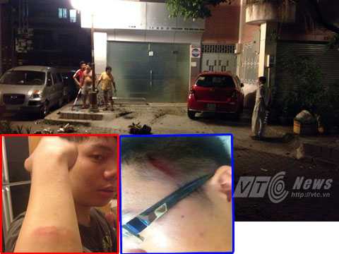 | Những người cầm gậy đánh hai nạn nhân gây thương tích. Ảnh: Phan Cường |